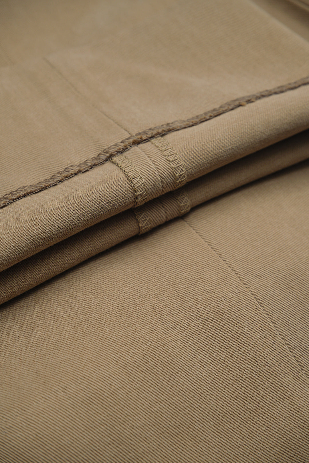 チノに近いカジュアルさを持ちながらも、スラックスらしい落ち着いた印象で、スタイリングに取り入れやすいニュートラルな色味です。